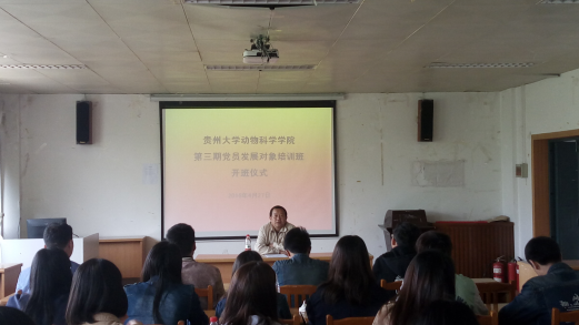任登鸿传达了《中共贵州大学委员会党校关于举办贵州大学第三期党员发展对象培训班的通知》文件精神,并对培训班学员提出了三点要求,一是要端正学习态度,深入学习党章,追求正能量;二是要积极宣传、践行党的路线,关心、爱护同学,影响与引导同学们传播正能量;三是要践行“两学一做”学习教育活动精神,争当“四有四讲”党员。